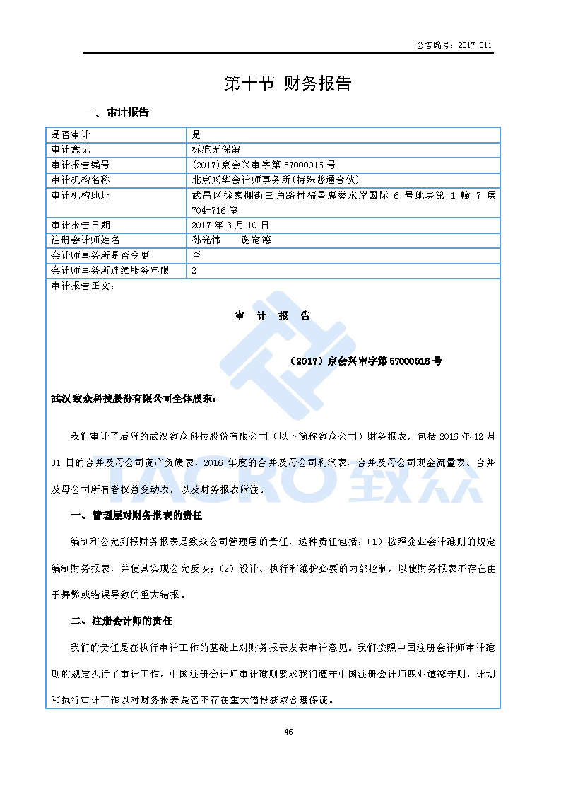致众科技:2016年年度报告(更正后)