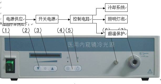 医用内窥镜冷光源一般由开关电源、控制电路、灯架、灯组件、隔热玻璃、风扇、散热器、亮度调节开关、隔热板、外壳、面板组成。